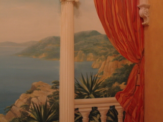 Ein wesentlicher Bestandteil unserer Wandmalerei ist die Trompe-l’oeil-Malerei. Klar ist es natürlich immer wieder Gesprächsstoff, wenn Sie Besuch bekommen und jemand legt seine Tasche auf das Fensterbrett, welches nur eine Malerei auf einer Wand ist. Sehr oft sind unsere Wand- und Deckenbilder im öffentlichen Raum wie Hotel- und Restaurantbereich zu sehen.